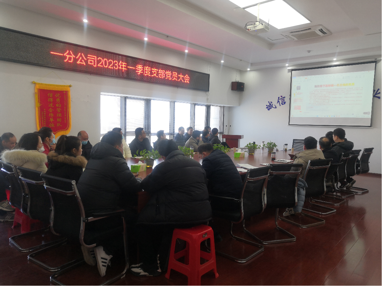 1月28日上午,第一分公司在會議室召開2023年一季度支部黨員大會。會議由支部書記倪海霞主持,分公司全體黨員參會。
