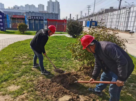 第一分公司紫郡府項目部為學習貫徹公司《環(huán)境保護和節(jié)能減排管理辦法》,樹牢安全施工、綠色施工理念。在植樹節(jié)來臨之際,為美化、凈化工作環(huán)境,增強團結(jié)互助意識,項目黨員及班子成員帶頭開展植樹活動。