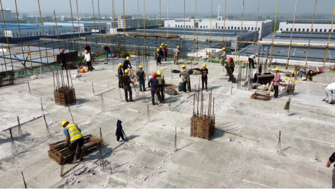 安徽建工二建第三分公司長豐新能源汽車配套產(chǎn)業(yè)園項目總用地面積約200畝,總建筑面積為16萬平方米,其中地上建筑面積為15.7萬平方米,地下建筑面積約為3000平方米,施工內(nèi)容主要包括7棟工業(yè)化廠房及一棟綜合樓,室外配套道路、給排水、供配電、景觀綠化等基礎(chǔ)設(shè)施工程等。目前項目1-7#廠房進入收尾階段,確保在4月底完成單體全部工程量,具備單體竣工驗收要求;綜合樓八層主體結(jié)構(gòu)搶工階段,確保5月中旬結(jié)構(gòu)封頂。
