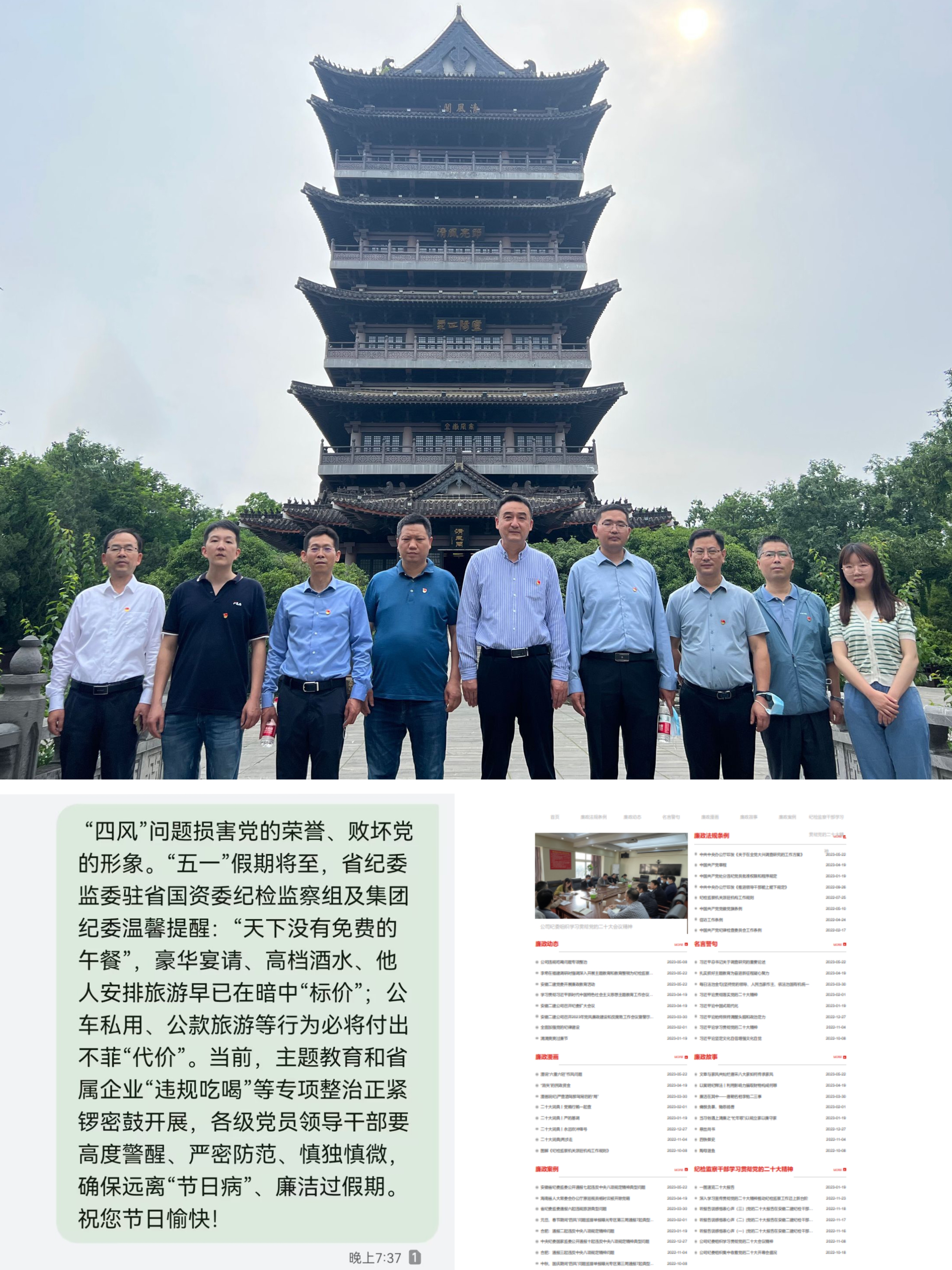 宣傳教育引導(dǎo),筑牢思想防線。一是開展節(jié)前廉政教育,以廉政教育專欄為平臺,及時更新廉潔動態(tài);通過發(fā)送廉潔短信,提醒黨員領(lǐng)導(dǎo)干部自覺遠離“節(jié)日病”。二是要抓實警示教育,所屬各單位認真學(xué)習(xí)近期安徽省紀委監(jiān)委、集團紀委公開通報的違反中央八項規(guī)定精神典型問題,以身邊事教育身邊人,增強黨員干部知止、不想的自覺。第二公司和后勤綜合服務(wù)部分別組織觀看了《筑牢作風堤壩》《八小時之外》,教育干部職工知敬畏、明底線、存戒懼。三是加強紀檢隊伍建設(shè),組織紀檢監(jiān)察干部走進包公祠,開展廉潔教育,進一步提升紀檢干部自身的黨性修養(yǎng),嚴防“燈下黑”。