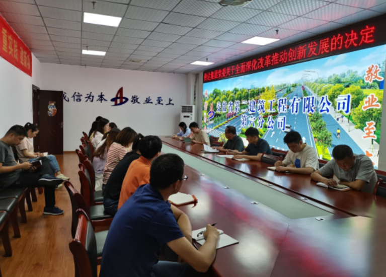 第六公司黨支部傳達(dá)學(xué)習(xí)安徽建工集團(tuán)全面深化改革推動(dòng)創(chuàng)新發(fā)展動(dòng)員部署暨主題教育黨課報(bào)告會(huì)精神。會(huì)議要求,一要提高政治站位,統(tǒng)一思想認(rèn)識(shí),充分認(rèn)識(shí)到集團(tuán)深化改革推動(dòng)創(chuàng)新發(fā)展是一項(xiàng)意義重大、影響深遠(yuǎn)的綜合性改革,是集團(tuán)在新起點(diǎn)上,把握新形勢(shì)新要求,謀劃新思路新發(fā)展的舉措,要全面貫徹落實(shí)建工控股黨委的決策部署,認(rèn)真把握集團(tuán)全面深化改革推動(dòng)創(chuàng)新發(fā)展的歷史使命;二要緊緊圍繞集團(tuán)戰(zhàn)略部署和工作安排,進(jìn)一步樹(shù)立為集團(tuán)大發(fā)展、轉(zhuǎn)型發(fā)展、高質(zhì)量發(fā)展作貢獻(xiàn)的責(zé)任和擔(dān)當(dāng)意識(shí);三要認(rèn)真落實(shí)集團(tuán)工作安排,進(jìn)一步做好市場(chǎng)開(kāi)拓,搶抓市場(chǎng)先機(jī),持續(xù)推進(jìn)項(xiàng)目標(biāo)準(zhǔn)化建設(shè),嚴(yán)格落實(shí)集團(tuán)、公司各項(xiàng)規(guī)定,樹(shù)牢風(fēng)險(xiǎn)意識(shí),做到“五個(gè)嚴(yán)”,持續(xù)推動(dòng)公司改革轉(zhuǎn)型、高質(zhì)量發(fā)展。