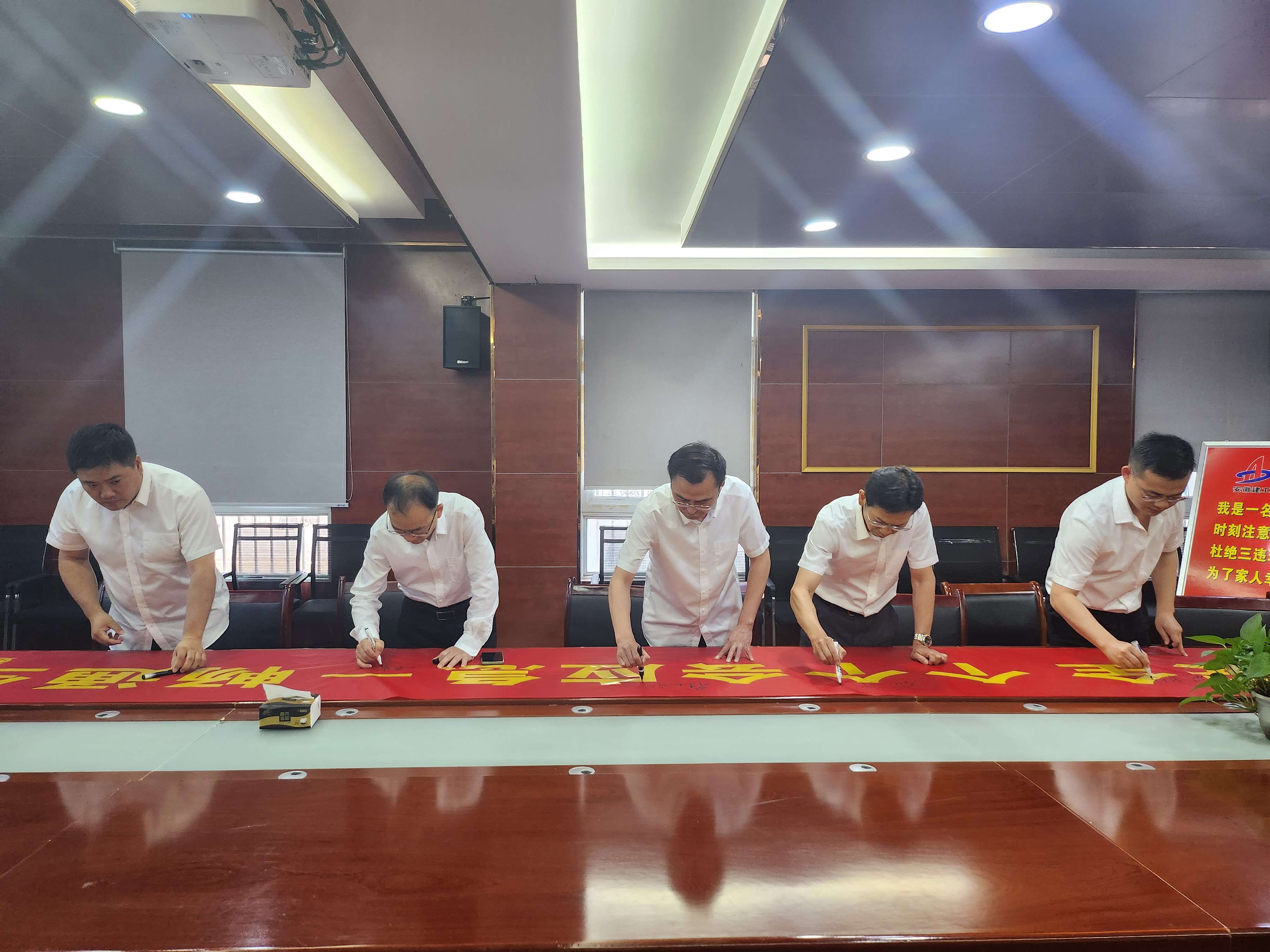 “我是一名安全建工人,我鄭重宣誓:時刻注意安全,遵守安全法規(guī);履行安全職責(zé),提高安全技能;杜絕三違現(xiàn)象,保證四不傷害;強化紅線意識,促進(jìn)安全發(fā)展;為了家人幸福、企業(yè)發(fā)展,誓做建工安全人!”伴隨著一陣陣響亮的宣誓聲,聯(lián)合簽名、觀看安全生產(chǎn)月主題宣傳片及公益廣告等,第一分公司2024年“安全生產(chǎn)月”正式拉開帷幕。