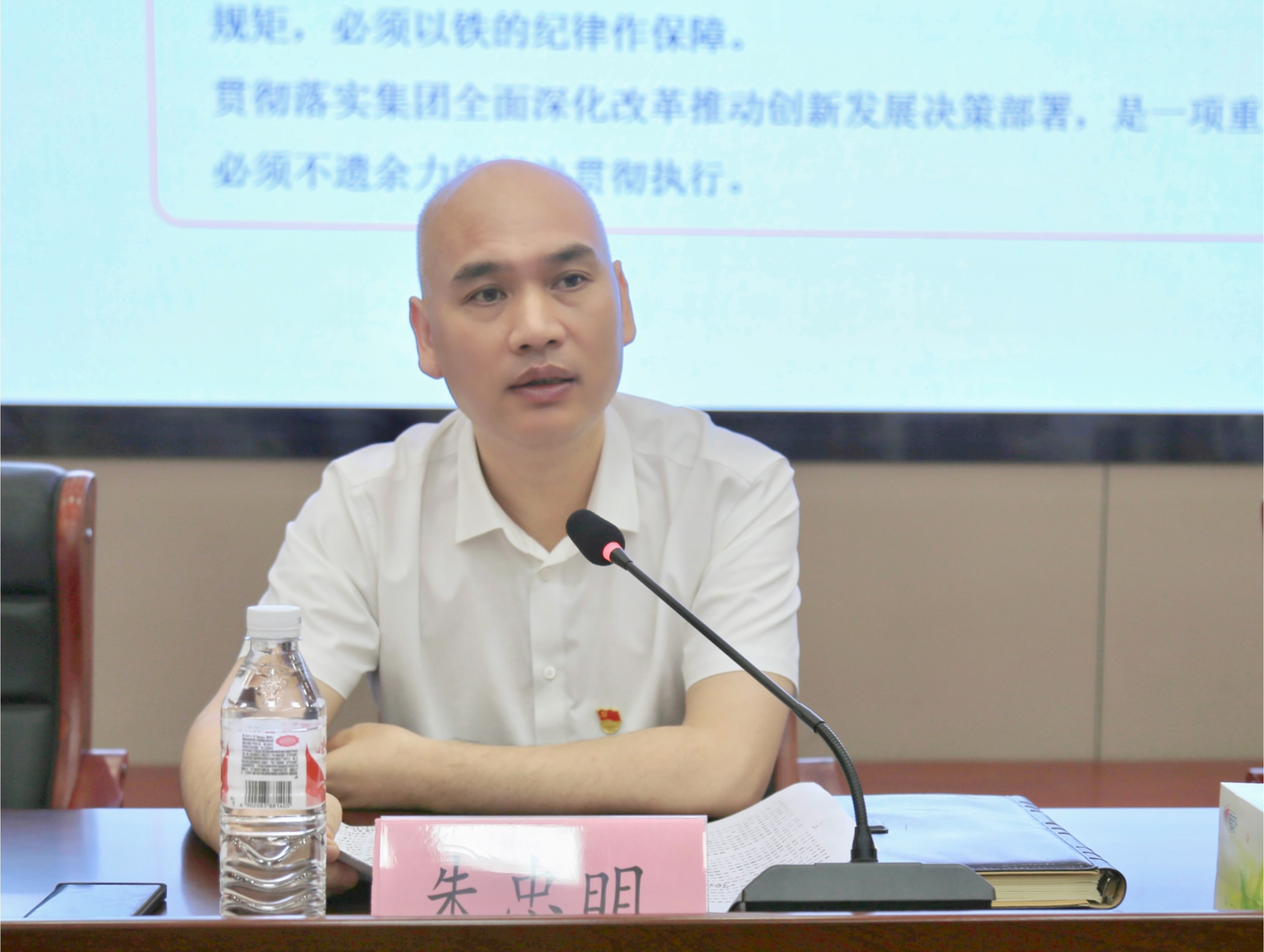 朱忠明作題為《遵規(guī)守紀(jì) 嚴(yán)于律己 以身作則 營造風(fēng)清氣正、干事創(chuàng)業(yè)的良好氛圍》專題黨課,從四個方面展開:一是扎實開展黨紀(jì)學(xué)習(xí)教育,強(qiáng)化黨員干部紀(jì)律意識。二是紀(jì)律建設(shè)要融入企業(yè)治理,推進(jìn)黨風(fēng)廉政建設(shè)。三是認(rèn)清形勢任務(wù),營造風(fēng)清氣正的干事氛圍。四是堅持真抓實干,扎實做好年度各項重點工作。