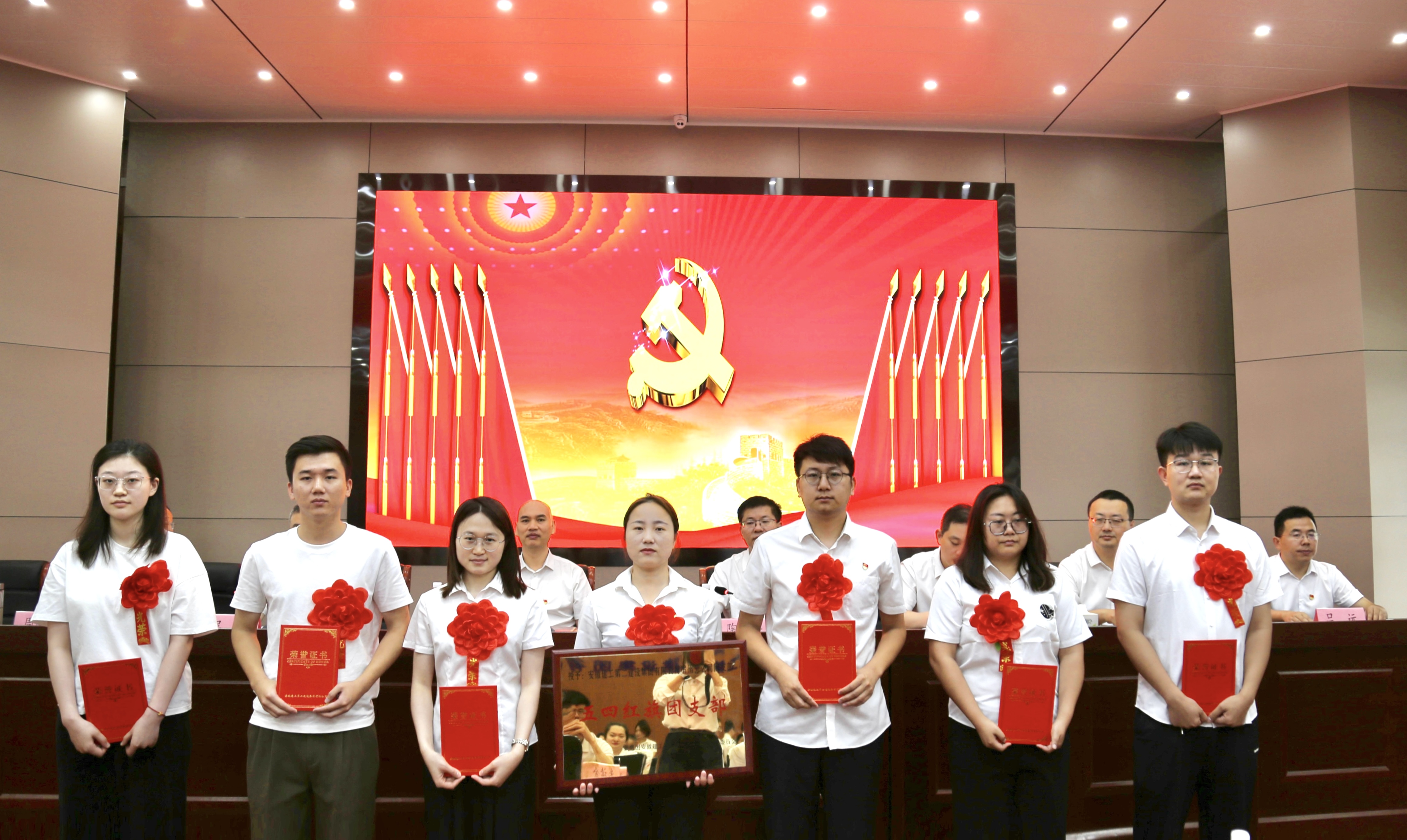 大會在莊嚴(yán)雄壯的國歌聲中拉開帷幕。黨委副書記、總經(jīng)理陶良敬宣讀2023年度公司黨委“兩優(yōu)一先”表彰文件,總工程師吳彬宣讀2023年度公司團(tuán)委“兩優(yōu)一紅”表彰文件。公司領(lǐng)導(dǎo)班子成員為受表彰的集體和個人頒發(fā)獎牌、榮譽證書,5名受表彰代表作交流發(fā)言。隨后,在朱忠明的帶領(lǐng)下,新黨員進(jìn)行入黨宣誓,全體黨員重溫入黨誓詞。
