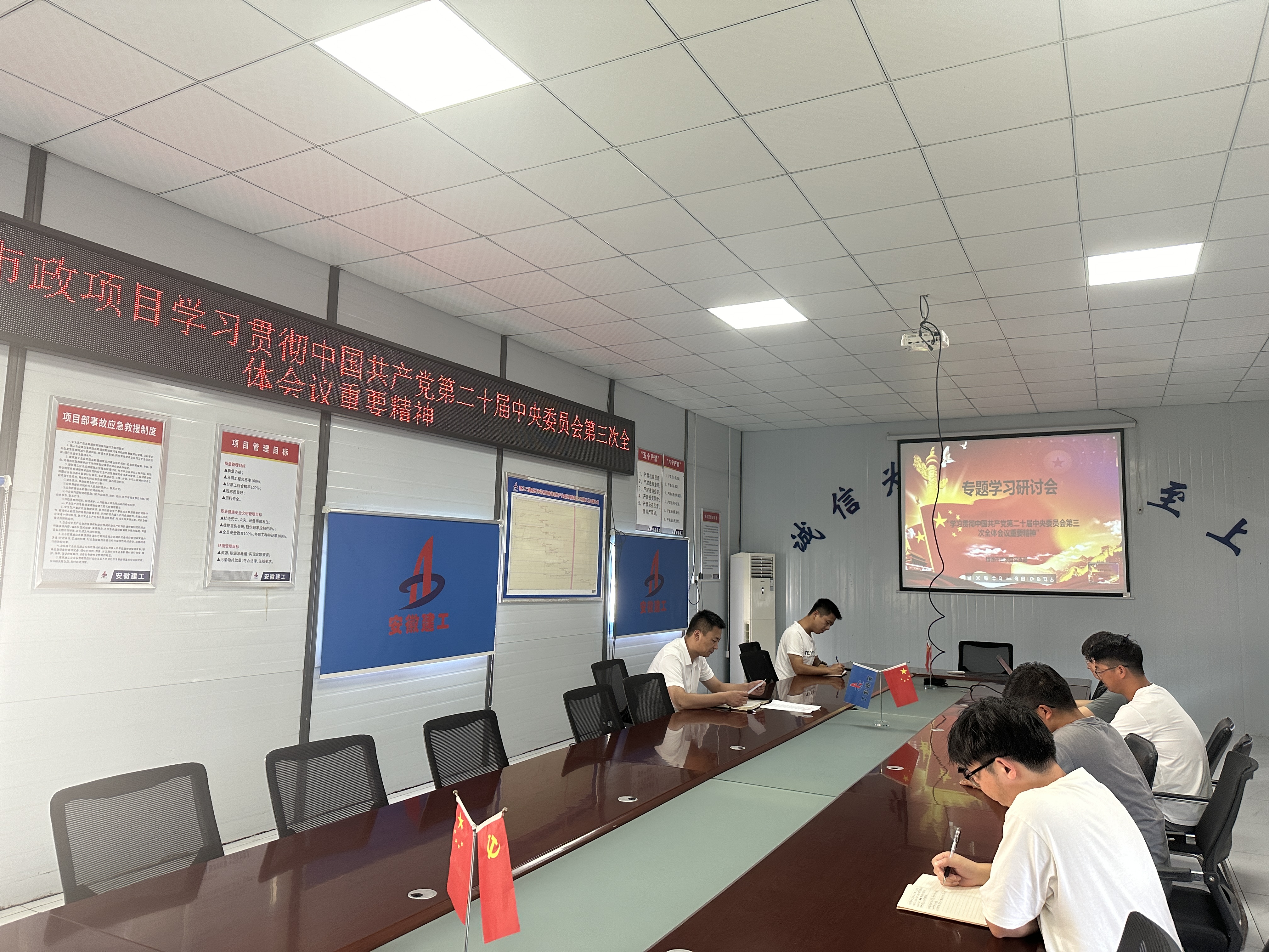 學(xué)習(xí)宣傳貫徹黨的二十屆三中全會精神,是當(dāng)前和今后一個(gè)時(shí)期的重大政治任務(wù)。宿徐現(xiàn)代產(chǎn)業(yè)園市政項(xiàng)目黨支部認(rèn)真學(xué)習(xí)、廣泛討論、深入交流,學(xué)習(xí)《中國共產(chǎn)黨第二十屆中央委員會第三次全體會議公報(bào)》,觀看文件解讀資料,并通過主題黨日、主題團(tuán)日、座談會等共同研讀《黨的二十屆三中全會<決定>學(xué)習(xí)輔導(dǎo)百問》,并結(jié)合自身工作情況分享學(xué)習(xí)心得和體會,持續(xù)掀起學(xué)習(xí)貫徹黨的二十屆三中全會精神熱潮,推動(dòng)黨的二十屆三中全會精神入腦入心、落地生根。
