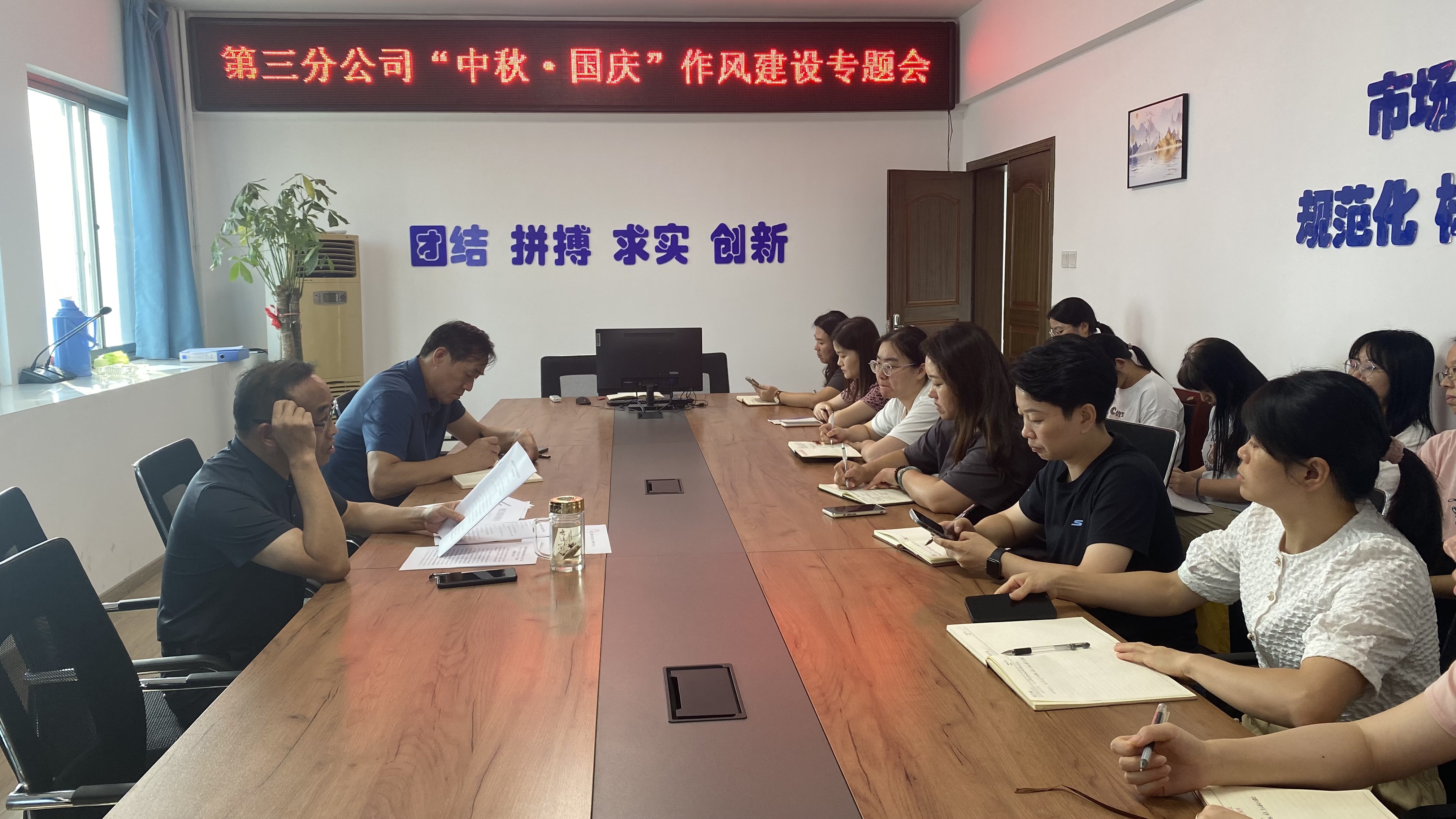 為進一步加強“中秋、國慶”期間紀(jì)律作風(fēng)建設(shè),增強分公司全員廉潔自律意識,營造風(fēng)清氣正的節(jié)日氛圍,9月12日下午,第三分公司召開“中秋、國慶”節(jié)前作風(fēng)建設(shè)專題會,會議由黨支部書記司圣華主持。