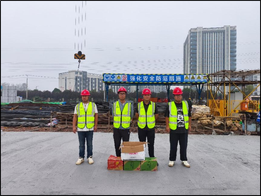 期間,項目部在嚴格落實方案到位、措施到位、監(jiān)管到位,確保節(jié)日安全生產(chǎn)工作的同時。為讓一線工友感受到企業(yè)的溫暖,10月6日中秋佳節(jié)當天,項目部領導班子成員深入施工一線、各作業(yè)點位,看望慰問節(jié)日期間奮戰(zhàn)一線的項目管理人員、農民工,送去精心準備的月餅,送上節(jié)日溫暖和祝福,對他們的堅守及付出表達了最誠摯的感謝。