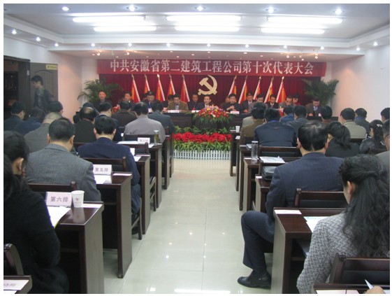 2010年11月25至26日,中共安徽省第二建筑工程公司第十次黨員代表大會隆重召開。來自生產一線、各部門、離退休支部等各個層面的72名黨員代表參加了大會,安徽建工集團有限公司黨委書記張海平、紀委書記、工會主席劉振武、黨委工作部主任吳曉武等出席大會開幕式。