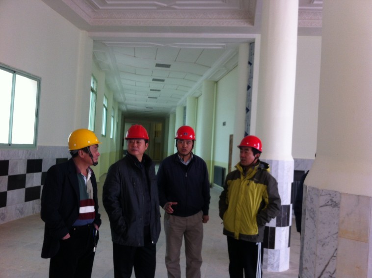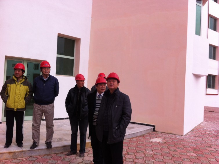 戴總先后實地查看了大學(xué)城1#建筑學(xué)院、9#學(xué)生公寓、10#學(xué)生公寓和18#學(xué)生公寓等四個項目,聽取了項目部工作匯報。戴總肯定了項目部前一階段所取得的成績,對項目部在人員配置不足,面臨重重困難的情況下完成的工作量表示了贊賞。戴總說,此行一是看望慰問項目部廣大干部職工;二是調(diào)整和充實項目部領(lǐng)導(dǎo)班子;三是落實明年4月16日竣工目標(biāo)的工作安排。戴總強(qiáng)調(diào),康斯坦丁大學(xué)城項目是安徽二建海外項目的關(guān)鍵工程,也是公司新的經(jīng)濟(jì)增長點(diǎn),公司上下對此項目非常重視。目前施工完成總量離阿國竣工要求日期日益接近,但也還存在不足,因此項目部全體職工要認(rèn)清形勢,要有緊迫感和危機(jī)感,在離竣工目標(biāo)只剩4個月的時間里,迅速掀起大干高潮,加快結(jié)構(gòu)施工進(jìn)度,狠抓工程收尾和零星附屬工程,質(zhì)量要上臺階,實現(xiàn)工期、質(zhì)量、安全、成本管理四個目標(biāo)。在抓好施工的同時,還要注意加大人才培養(yǎng)力度,不斷優(yōu)化海外項目部人力資源結(jié)構(gòu),完善人才儲備,為海外未來的發(fā)展奠定堅實的人才基礎(chǔ);培養(yǎng)一批可靠的有實力的施工合作伙伴;進(jìn)一步探索符合海外特點(diǎn)的項目施工管理經(jīng)驗,向集團(tuán)和公司交上一份滿意的答卷。