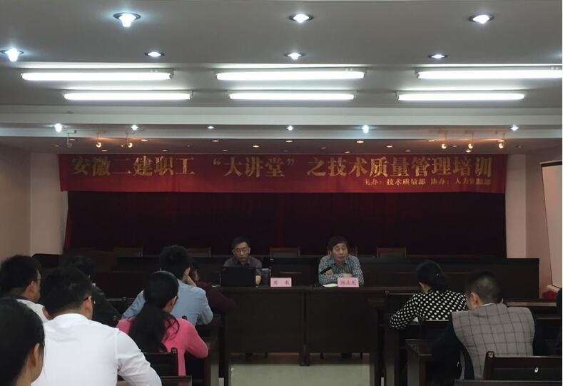 為響應(yīng)安徽二建職工“大講堂”活動(dòng)號(hào)召,2016年5月24日上午8:30,技術(shù)質(zhì)量部和人力資源部共同組織的技術(shù)質(zhì)量管理培訓(xùn)在公司三樓會(huì)議室舉行,公司總工程師邱立龍出席,機(jī)關(guān)本部所屬各單位和項(xiàng)目部共30余人參加培訓(xùn)。
