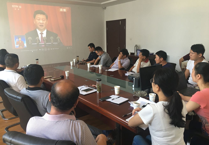 在觀看學習習總書記在慶祝中國共產(chǎn)黨成立95周年大會上的講話時,同志們聚精會神,不時提筆記錄,緊隨著總書記的講話內(nèi)容邊學習邊思考。