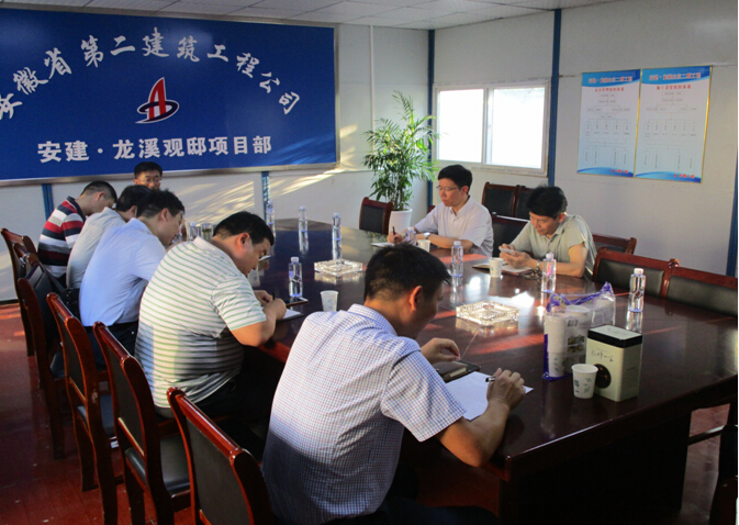 在隨后召開(kāi)的現(xiàn)場(chǎng)工作會(huì)上,王厚良副總經(jīng)理對(duì)安建·龍溪山莊工程質(zhì)量和目前所取得的成績(jī)給予了充分肯定,對(duì)項(xiàng)目近期工作提出四點(diǎn)要求,一是要高標(biāo)準(zhǔn)、嚴(yán)要求,抓好現(xiàn)場(chǎng)安全文明施工和標(biāo)準(zhǔn)化施工,提高安徽建工集團(tuán)在當(dāng)?shù)氐挠绊懥?;二是要高度重視安全質(zhì)量,確保安全無(wú)事故,質(zhì)量無(wú)缺陷;三是要強(qiáng)化目標(biāo)責(zé)任制,充分調(diào)動(dòng)全體員工的積極性;四是要加強(qiáng)人才培養(yǎng),對(duì)青年人,工作上要交真本領(lǐng),業(yè)務(wù)上要經(jīng)常開(kāi)展技能培訓(xùn)。
