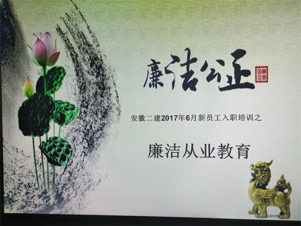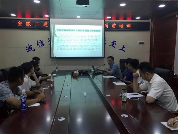 6月19日,安徽二建紀委對新入職員工進行了崗前廉潔從業(yè)教育培訓,首次將廉潔自律作為走上新崗位的第一課,引導和加強新員工在思想上牢固樹立“廉潔從業(yè),遵紀守法”的廉潔意識,提高廉潔自律的辨識能力和自我約束力。