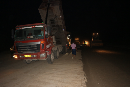 白天,烈日炎炎,驕陽似火,當(dāng)大多數(shù)人對室外的高溫望而卻步,躲在空調(diào)房內(nèi)納涼避暑之時,卻有這樣一群可敬的人頂著烈日、冒著酷暑,揮汗如雨,在高溫的“烤”驗下仍堅守崗位。他們平凡無奇,對高溫也并非有特別的忍耐力,只因身上肩負(fù)著“一流建工夢”的擔(dān)子,讓他們堅持著。夜晚,為了推進(jìn)太和ppp項目建設(shè)工期進(jìn)度,照樣加班加點的干。夜晚九點多的施工現(xiàn)場,自卸車川流不息,穿著橘黃色馬甲的施工人員,揮舞著導(dǎo)流棒對來往車輛進(jìn)行分流,工人正在鋪裝瀝青,壓路機(jī)來回壓實,熱火朝天。