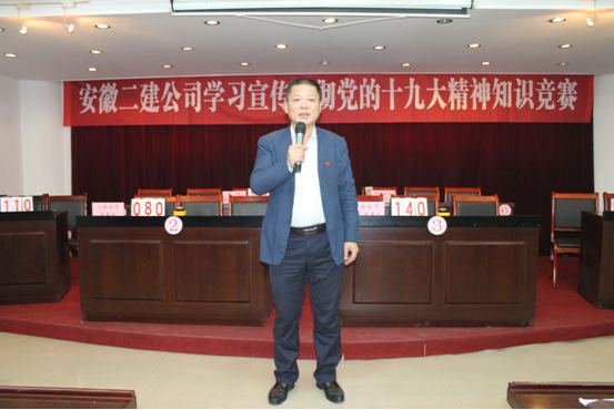 11月7日下午,安徽二建公司在原辦公樓三樓會議室舉辦了“學(xué)習(xí)宣傳貫徹黨的十九大精神知識競賽”活動。來自所屬各黨支部共計11支代表隊參加了此次比賽。公司黨委書記劉賢奇、總工程師邱立龍應(yīng)邀出席會議,工會主席李林、紀委書記仇多維、女工部主任王俊共同擔(dān)任本次知識競賽活動的評委。公司機關(guān)各部門負責(zé)人,黨群部門全體人員,分公司黨政主要負責(zé)人、團支部書記觀看比賽。
