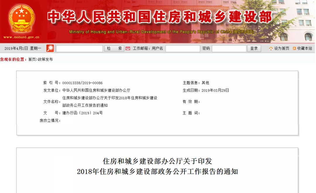 ■ 2019年,住房和城鄉(xiāng)建設部將以習近平新時代中國特色社會主義思想為指導,不斷完善政務公開工作機制,提高政務公開工作水平。