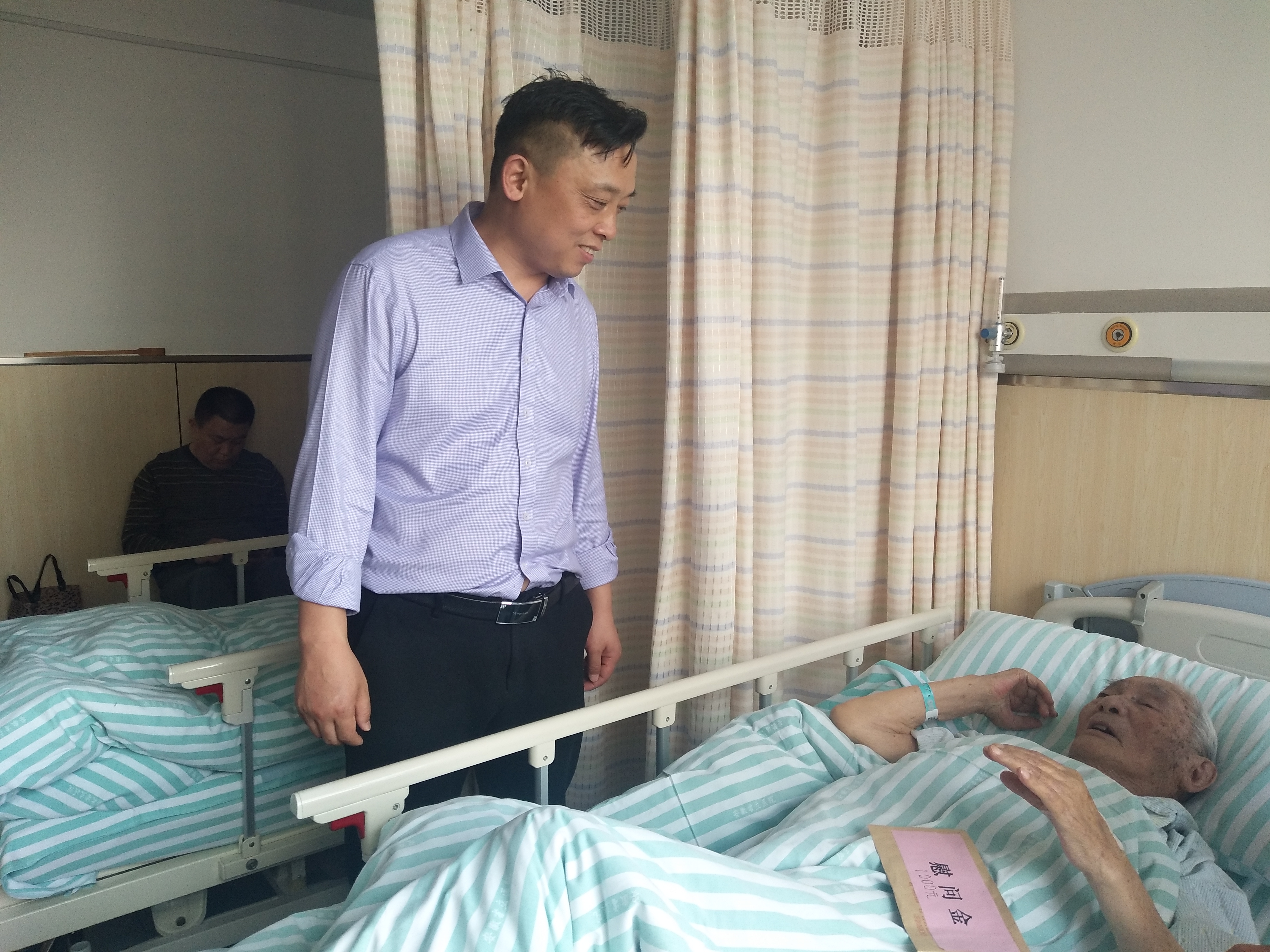 2019年4月18日,公司黨委副書(shū)記、紀(jì)委書(shū)記仇多維在后勤綜合服務(wù)支部書(shū)記王文虎、專職離休老干部工作者李小燕陪同下,赴安徽省立醫(yī)院看望生病住院的離休老干部姚信甫。