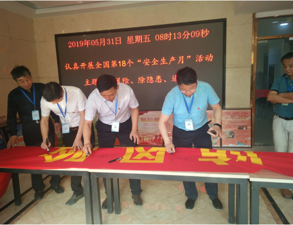 2019年5月31日,公司安全管理部、工會(huì)在公司大院舉行了全國(guó)第十八個(gè)“安全生產(chǎn)月”活動(dòng)啟動(dòng)儀式,公司機(jī)關(guān)全體職工參加??偨?jīng)理陸勤斌作啟動(dòng)講話,指出安全生產(chǎn)工作的重要性和“安全生產(chǎn)月”活動(dòng)的意義。分管安全副總經(jīng)理葉和永帶領(lǐng)全體職工進(jìn)行了安全宣誓,隨后,在印有“安全生產(chǎn)月”主題“防風(fēng)險(xiǎn) 除隱患 遏事故”的橫幅上簽名。