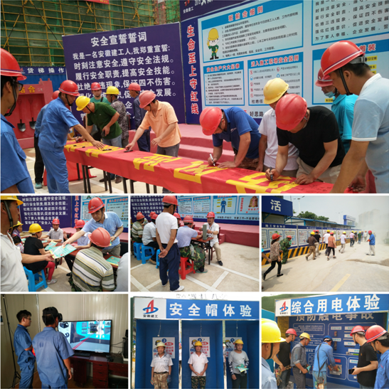 活動(dòng)當(dāng)天,共發(fā)放安全宣傳資料100余份,接受項(xiàng)目職工咨詢50余人次;開展預(yù)防高墜、中暑及火災(zāi)救援演練;給工友們體檢,告知夏季高溫季節(jié)施工注意事項(xiàng);帶工友們觀看圖片展覽,講解安全生產(chǎn)知識(shí),到安全教育體驗(yàn)館進(jìn)行實(shí)體和VR虛擬體驗(yàn);現(xiàn)場(chǎng)全體人員參與宣誓及簽名活動(dòng)?,F(xiàn)場(chǎng)活動(dòng)結(jié)束后,安全管理部在會(huì)議室開展安全主題宣講活動(dòng),帶領(lǐng)項(xiàng)目職工學(xué)習(xí)《安全生產(chǎn)條例》及《建筑安全生產(chǎn)標(biāo)準(zhǔn)化示范工地評(píng)價(jià)標(biāo)準(zhǔn)》(DB34/T5040-2016),組織項(xiàng)目管理人員開展安全生產(chǎn)經(jīng)驗(yàn)交流會(huì),總結(jié)工作亮點(diǎn),查找不足,促進(jìn)今后工作的順利開展。