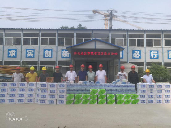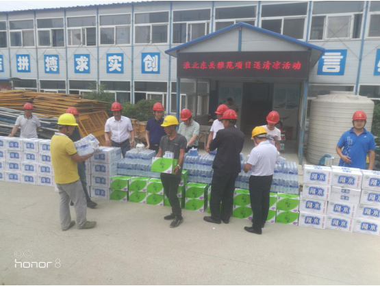 為做好公司夏季安全生產(chǎn)和防暑降溫工作,關心關愛一線職工, 6 月22 日,公司副總經(jīng)理葉和永,總經(jīng)理助理蒯家江、安全總監(jiān)曹建在分公司支部書記陳習武的陪同下來到淮北東岳雅苑項目部,為一線工人送去飲料、藥品等防暑降溫物資,并囑咐基層管理人員采取有效防暑降溫和安全生產(chǎn)保障措施, 避免高溫時段疲勞作 業(yè), 防止中暑和其他各類生產(chǎn)安全事故的發(fā)生。