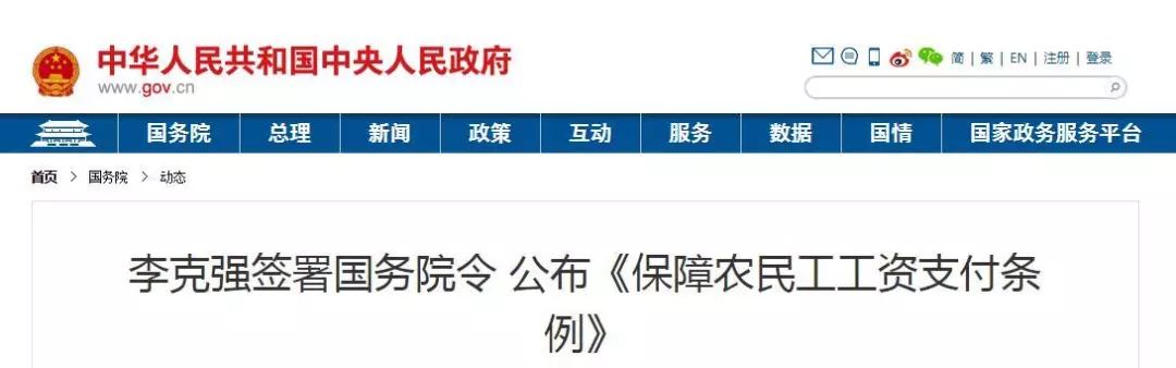 國務(wù)院總理李克強(qiáng)日前簽署國務(wù)院令,公布《保障農(nóng)民工工資支付條例》(以下簡稱《條例》),自2020年5月1日起施行。
