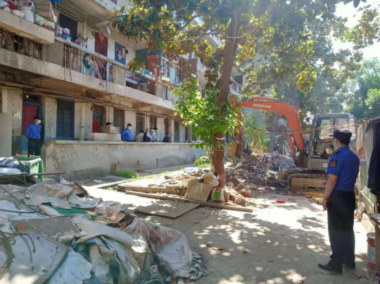 后勤綜合服務部和城管科工作人員聯(lián)合拆除違章搭建