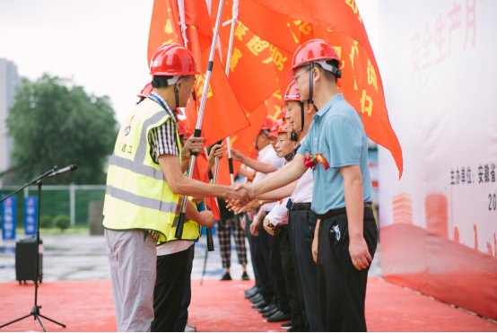 之后,公司工程管理部副主任丁光啟宣讀了2020年勞動競賽方案;總經理助理、一分公司經理崔書斌代表勞動競賽參賽單位進行了宣誓;參加啟動儀式的領導向參賽單位進行授旗。最后,陸勤斌宣布安徽二建公司“戰(zhàn)疫情、搶工期、保目標、促超產”勞動競賽正式開始。