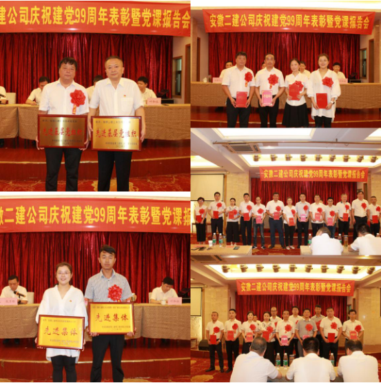 為隆重慶祝中國共產(chǎn)黨成立99周年,進(jìn)一步加強(qiáng)基層黨組織建設(shè)和黨員隊(duì)伍建設(shè),6月30日上午,安徽二建公司黨委召開慶祝建黨99周年表彰暨黨課報(bào)告會。公司領(lǐng)導(dǎo)、機(jī)關(guān)全體黨員、所屬單位領(lǐng)導(dǎo)班子成員(黨員)、受表彰的先進(jìn)基層黨組織代表、優(yōu)秀共產(chǎn)黨員、優(yōu)秀黨務(wù)工作者、新冠肺炎疫情防控工作先進(jìn)集體和先進(jìn)個(gè)人參加會議。會議由公司黨委副書記、紀(jì)委書記仇多維主持。