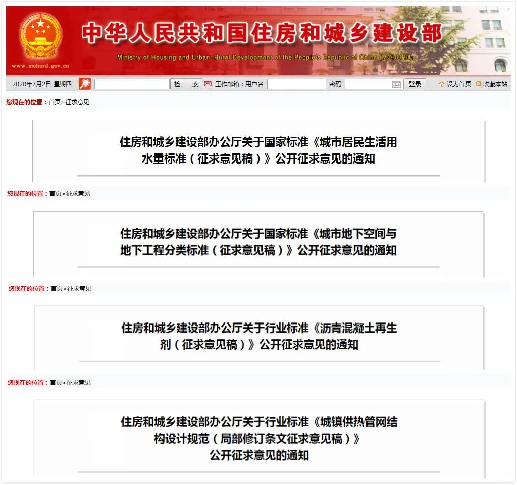 近日,國(guó)家標(biāo)準(zhǔn)《城市居民生活用水量標(biāo)準(zhǔn)(征求意見稿)》《城市地下空間與地下工程分類標(biāo)準(zhǔn)(征求意見稿)》和行業(yè)標(biāo)準(zhǔn)《瀝青混凝土再生劑(征求意見稿)》《城鎮(zhèn)供熱管網(wǎng)結(jié)構(gòu)設(shè)計(jì)規(guī)范(局部修訂條文征求意見稿)》向社會(huì)公開征求意見。意見反饋截止時(shí)間為2020年7月27日。《城市居民生活用水量標(biāo)準(zhǔn)(征求意見稿)》本標(biāo)準(zhǔn)的主要技術(shù)內(nèi)容是:1. 總則;2. 術(shù)語;3. 用水量標(biāo)準(zhǔn)。本標(biāo)準(zhǔn)修訂的主要技術(shù)內(nèi)容是:1.增加城市居民生活用水量標(biāo)準(zhǔn)的確定原則;2.增加居民生活保障基本用水量;3.根據(jù)最新調(diào)研情況,按照人均水資源量,對(duì)城市居民生活用水量進(jìn)行分級(jí)取值。《城市地下空間與地下工程分類標(biāo)準(zhǔn)(征求意見稿)》本標(biāo)準(zhǔn)規(guī)定了城市地下空間與地下工程的分類。本標(biāo)準(zhǔn)適用于城市地下空間開發(fā)利用的規(guī)劃、設(shè)計(jì)、施工、使用、維護(hù)和管理及相關(guān)領(lǐng)域。本標(biāo)準(zhǔn)規(guī)定了瀝青混凝土再生劑的術(shù)語和定義、要求、試驗(yàn)方法、檢驗(yàn)規(guī)則、包裝、運(yùn)輸和貯存等。本標(biāo)準(zhǔn)適用于市政道路及各等級(jí)公路瀝青路面廠拌熱再生和就地?zé)嵩偕鷷r(shí),為改善再生瀝青混合料路用性能而摻用的再生劑。《城鎮(zhèn)供熱管網(wǎng)結(jié)構(gòu)設(shè)計(jì)規(guī)范(局部修訂條文征求意見稿)》主要修訂內(nèi)容包括:根據(jù)供熱管網(wǎng)穿跨越(或貼鄰)地段或設(shè)施的重要程度等因素,確定結(jié)構(gòu)的設(shè)計(jì)使用年限和安全等級(jí)要求;根據(jù)供熱管網(wǎng)管廊結(jié)構(gòu)的環(huán)境條件和設(shè)計(jì)使用年限,補(bǔ)充完善結(jié)構(gòu)的耐久性設(shè)計(jì)要求;適當(dāng)提高結(jié)構(gòu)安全度水準(zhǔn),與國(guó)家現(xiàn)行相關(guān)標(biāo)準(zhǔn)密切銜接和協(xié)調(diào)統(tǒng)一;補(bǔ)充頂進(jìn)、盾構(gòu)、淺埋暗挖等非開挖施工的管廊結(jié)構(gòu)設(shè)計(jì)要求;補(bǔ)充完善直埋固定墩及檢查室穩(wěn)定驗(yàn)算公式等。用黑體字表示的條文為強(qiáng)制性條文,必須嚴(yán)格執(zhí)行。