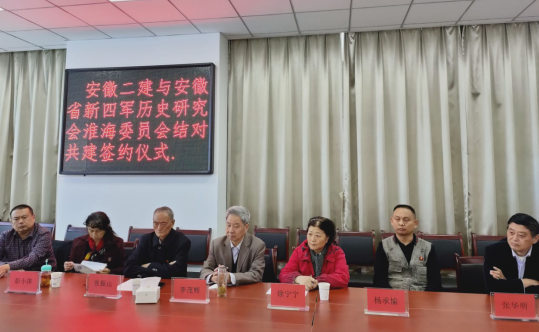 2020年10月26日下午,安徽省新四軍歷史研究會(huì)淮海委員會(huì)會(huì)長張振山,副會(huì)長徐寧寧、彭小萍、張華明、楊承愉、李茂輝以及秘書長高立共7人蒞臨安徽二建四分公司開展結(jié)對(duì)共建簽約儀式。