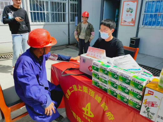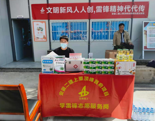 本次活動以“文明新風(fēng)人人創(chuàng),雷鋒精神代代傳”為主題,主要通過設(shè)置學(xué)雷鋒志愿服務(wù)崗,為項(xiàng)目農(nóng)民工測量血壓,免費(fèi)發(fā)放預(yù)防感冒藥品以及清熱下火飲品等,保障一線民工的身體健康?!耙痪€民工不僅辛苦,面臨的風(fēng)險也大,我們能做的就是為他們的健康保駕護(hù)航?!鄙侠蹴?xiàng)目黨支部書記劉振華這樣說。
