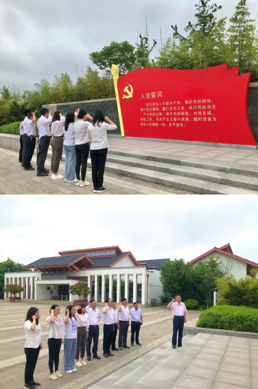 隨后,大家沿著紅色足跡來(lái)到了沈浩同志先進(jìn)事跡陳列館,現(xiàn)場(chǎng)認(rèn)真聆聽了沈浩同志的先進(jìn)事跡,在他擔(dān)任村領(lǐng)導(dǎo)的六年中,他深入群眾、拉近距離、調(diào)研走訪、摸清村情,用心融入到小崗村。在為小崗村脫貧致富忙碌奔波中,三過(guò)家門而不入,吸引大學(xué)生進(jìn)村創(chuàng)業(yè)、招商引資辦工業(yè)、開發(fā)旅游促三產(chǎn)等一系列措施,使得小崗村村民生活水平顯著提高,文化生活豐富多彩,精神面貌煥然一新。在學(xué)習(xí)沈浩同志先進(jìn)事跡時(shí),大家無(wú)不為沈浩扎根小崗、克己奉公、干事創(chuàng)業(yè)的崇高品質(zhì)所感動(dòng),更加明白了為什么他能成為小崗村鄉(xiāng)親們?nèi)伟聪录t手印留下的好干部、人民好公仆。在陳列館門前,黨員面對(duì)鮮紅的黨旗,重溫入黨誓詞,莊嚴(yán)宣誓。