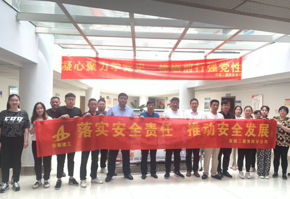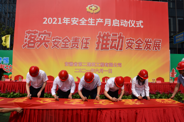 6月1日上午,安徽二建公司在六分公司文一春風里項目舉行“安全生產(chǎn)月”啟動儀式,公司安委會成員,安全管理部、工會全體人員,所屬各單位分管安全、質(zhì)量副經(jīng)理、安全科長,在肥項目經(jīng)理共百余人參加。