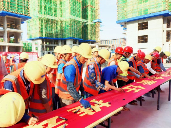 上午8點30分活動開始,活動由副總經(jīng)理葉和永主持。全體職工在安全總監(jiān)曹建的帶領(lǐng)下進行了安全宣誓。隨后,安全管理部副主任賈賢財組織大家進行安全承諾簽名、安全咨詢及消防應急救援演練活動。公司所屬各單位、項目部也同步開展了啟動儀式。