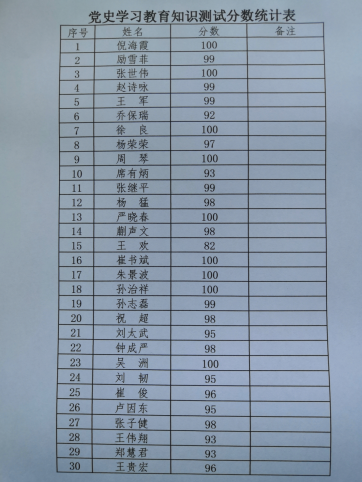 為充分學深、弄懂、悟透“四史”,永葆初心、勇?lián)姑?。一分公司黨支部于6月1日組織開展黨史學習教育知識測試活動。通過測試,分公司全體黨員堅定信念,銘記歷史,不忘初心,知史愛黨,知史愛國。