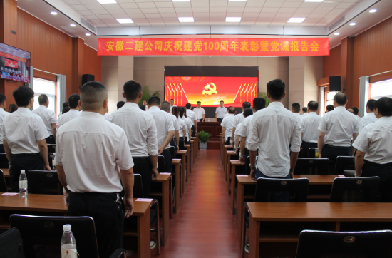 百年征程波瀾壯闊,百年初心歷久彌堅。6月29日,安徽二建公司在新會議室召開慶祝建黨100周年表彰暨黨課報告會。公司領導、機關全體黨員、所屬單位領導班子成員(黨員)、受表彰的先進基層黨組織代表、優(yōu)秀共產(chǎn)黨員、優(yōu)秀黨務工作者,以及“讀黨史、守初心、擔使命”主題閱讀演講比賽活動獲獎人員參會。會議由公司黨委副書記、紀委書記仇多維主持。
