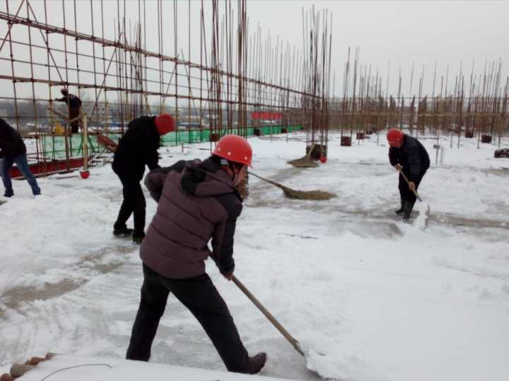 皚皚白雪覆蓋著皖北大地,凜冽的北風(fēng)吹在面頰上非常刺痛,全體員工發(fā)揚安徽二建人“特別能戰(zhàn)斗、特別能吃苦”的精神,與風(fēng)雪嚴(yán)寒對抗,他們迅速將影響施工的積雪清掃完畢,并科學(xué)調(diào)度、合理鋪排,施工緊張有序,項目建設(shè)進度不斷推進。