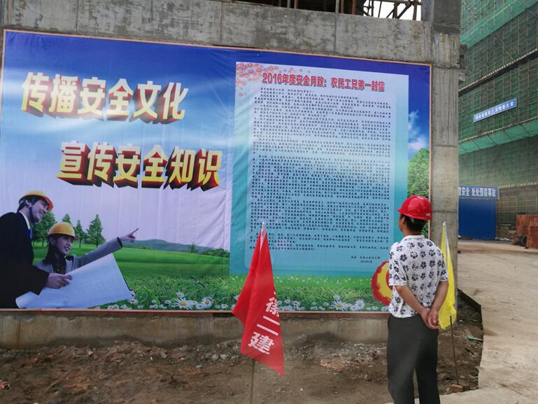 在本次“安全生產(chǎn)月”活動期間,三分公司安建·龍溪山莊項目部將根據(jù)集團(tuán)及公司文件要求,緊密圍繞“強化安全發(fā)展觀念、提升全民安全素質(zhì)”的活動主題,加大安全宣傳力度,組織廣大員工、一線作業(yè)人員學(xué)習(xí)相關(guān)法律法規(guī),開展應(yīng)急演練、致農(nóng)民工兄弟一封信、播放安全警示紀(jì)錄片等一系列活動,創(chuàng)新安全警示教育,推進(jìn)安全文化建設(shè),精心挑選了一批安全漫畫張貼在施工現(xiàn)場顯要位置,通過各種形式向全體施工人員傳遞“安全生產(chǎn)”的理念,增添了安全月的活動氣氛,扮“靚”了施工現(xiàn)場。同時充分發(fā)揮現(xiàn)場質(zhì)量員、安全員作用,將活動有組織的開展好,將現(xiàn)場的安全質(zhì)量、文明施工控制好,實現(xiàn)項目部施工生產(chǎn)安全平穩(wěn)推進(jìn)。