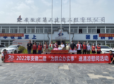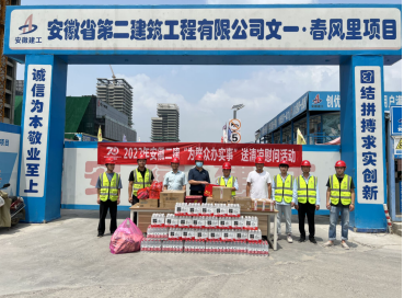 在肥東石塘鎮(zhèn)火龍社區(qū)安置點(diǎn)項(xiàng)目,葉和永為項(xiàng)目職工送上了夏季防暑藥品、飲料、花露水、毛巾等慰問品,叮囑他們要做好疫情防控形勢(shì)下的高溫作業(yè)和高溫天氣下的勞動(dòng)保護(hù)。